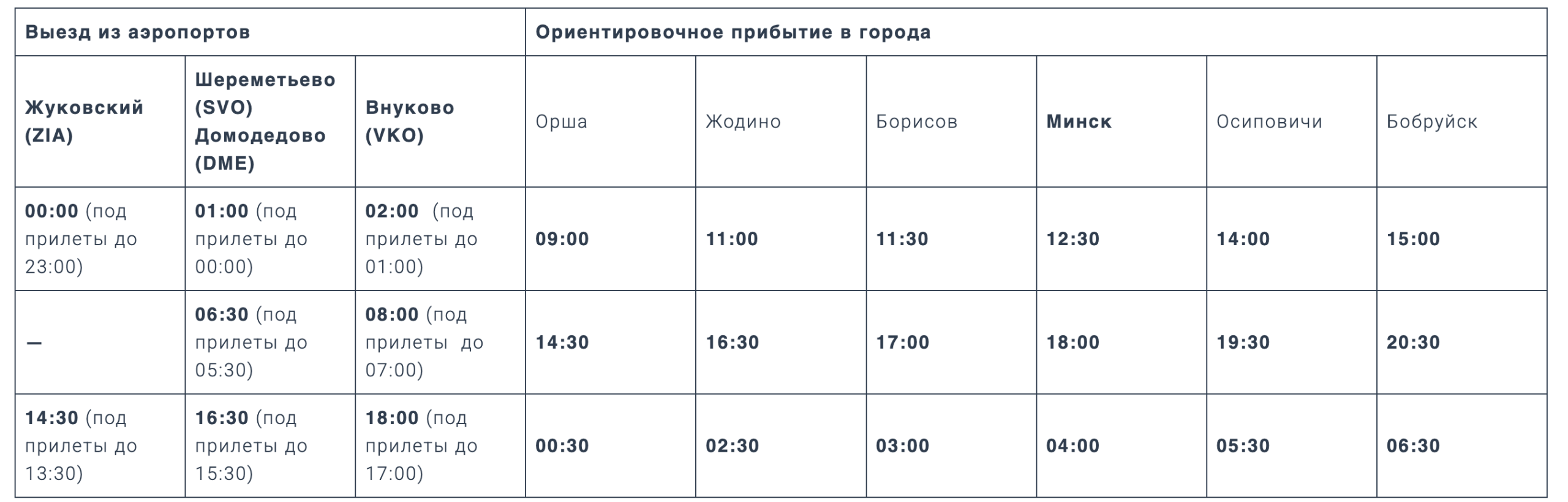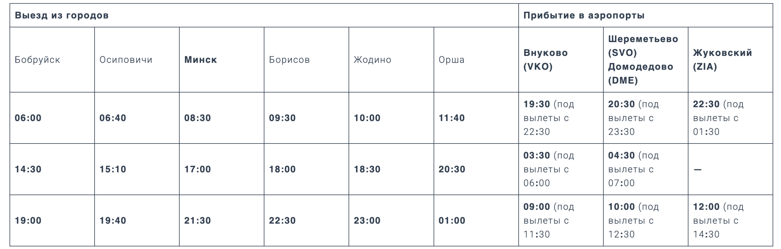Бобруйск-Осиповичи-Минск-Жодино-Борисова/п Шереметьево / Домодедово/ Внуково150.00 BYN300.00 BYN